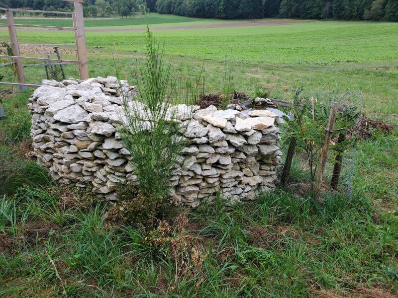 Die kleine Steinmauer wächst. Sie soll zu einer Eidechsenburg werden. Außerdem gibt es ein Mikroklima um auch später Sachen anbauen zu können die für die Alb eher kritisch sind.