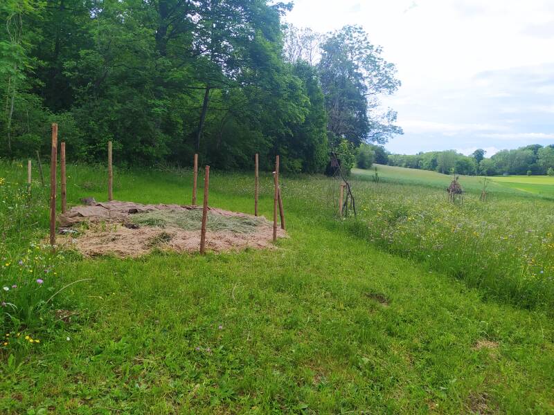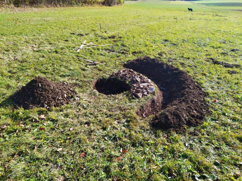 Rechts ein Mauswiesel Habitat (mitlerweile gibt es 3 Habitate), da es viele Wühlmäuse gibt.