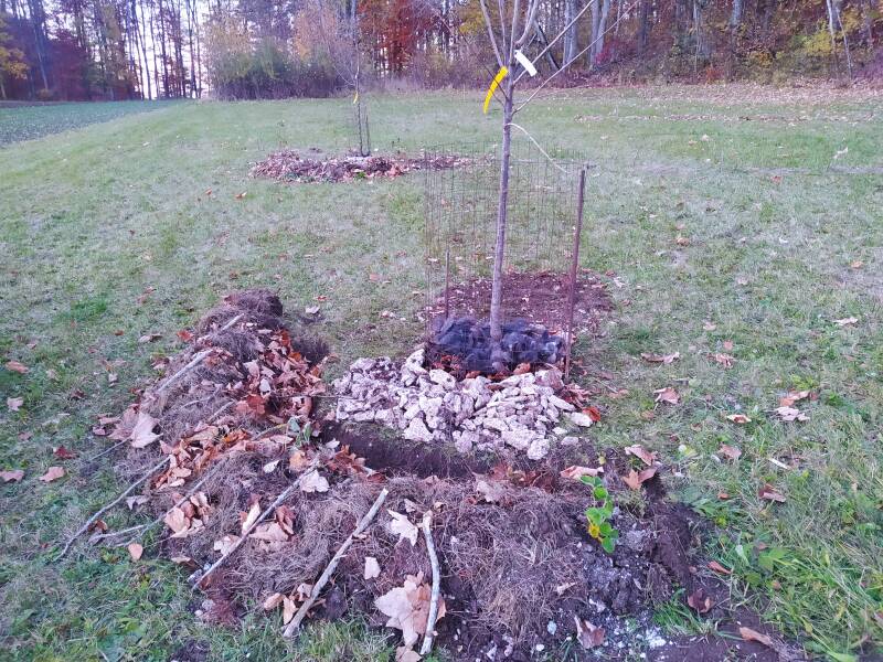 Winter is coming. Der vordere Baum ist eine Kirsche, der hintere ein Apfelbaum. Die frostfreien Tage habe ich genutzt um die Bäume und Büsche (nicht auf dem Bild) in die Erde zu bringen.